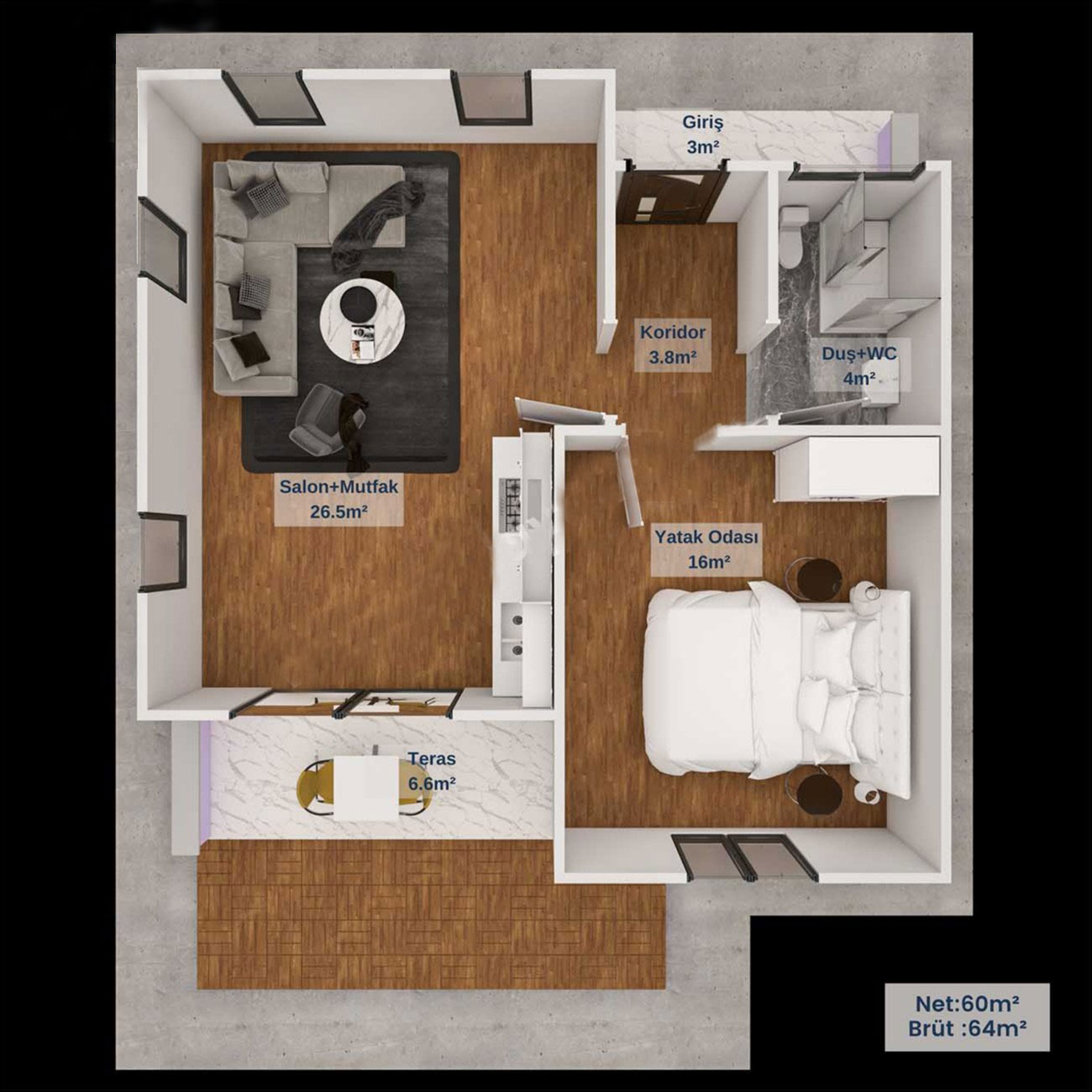 64 Metrekare Betonarme Ev