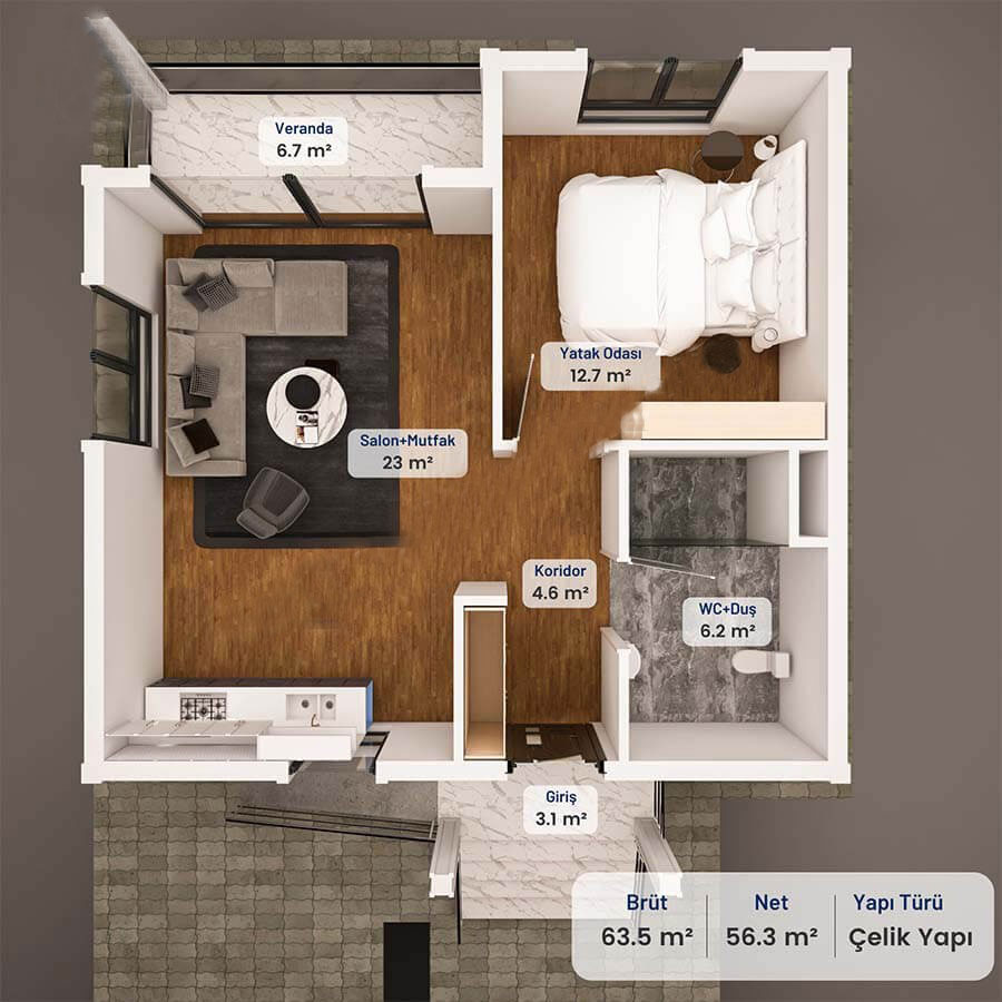 65 Metrekare Betonarme Ev